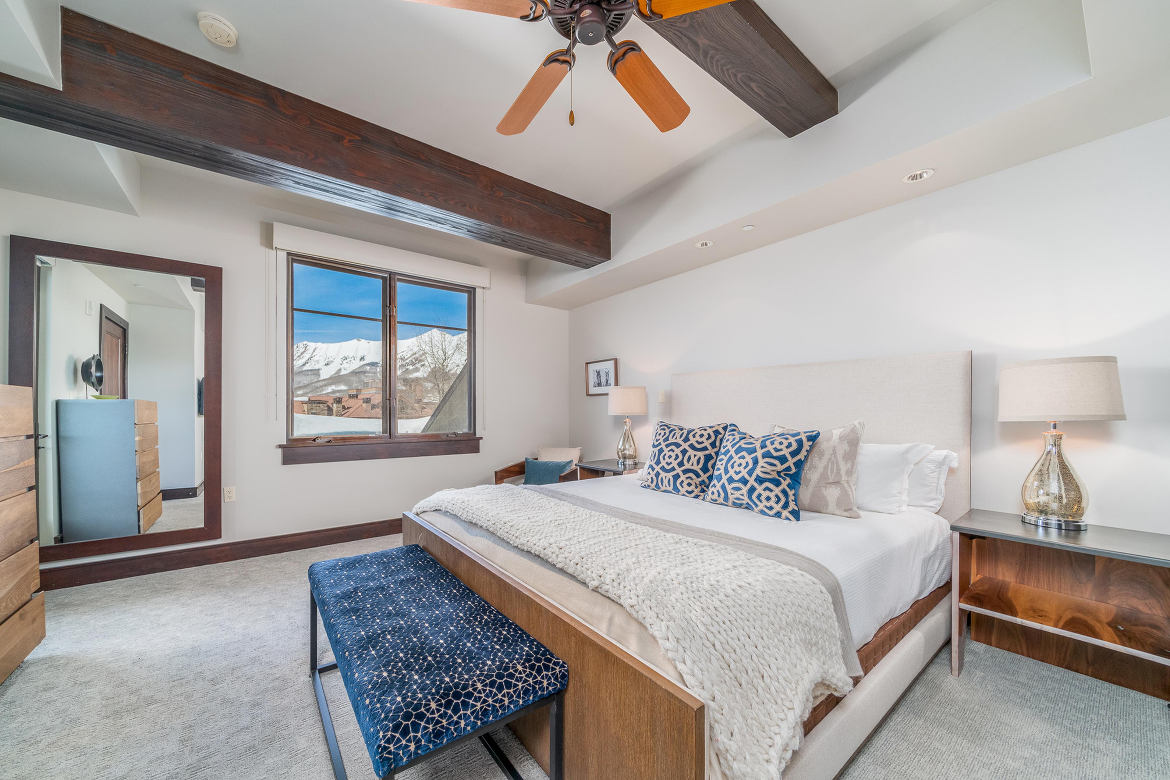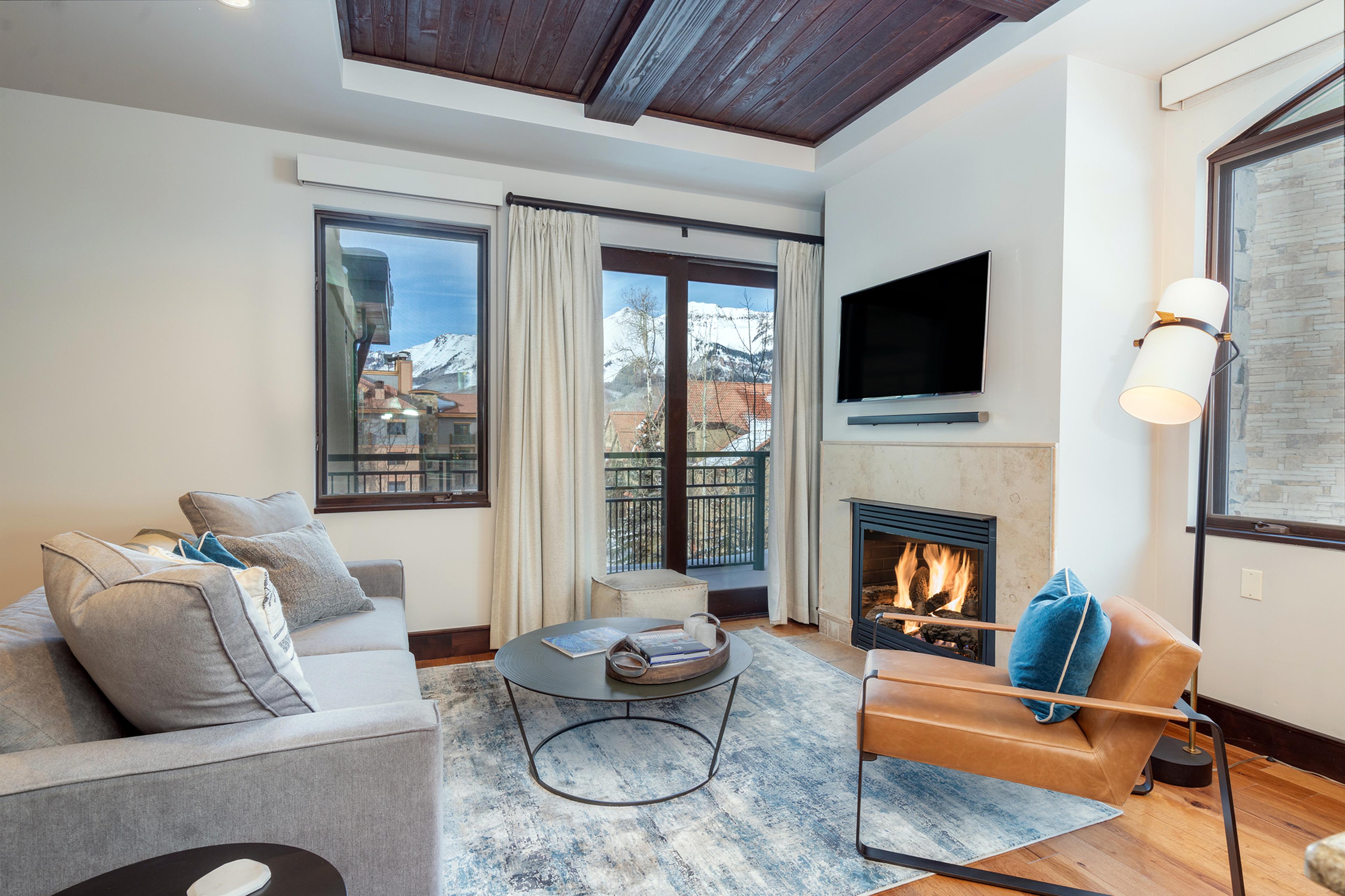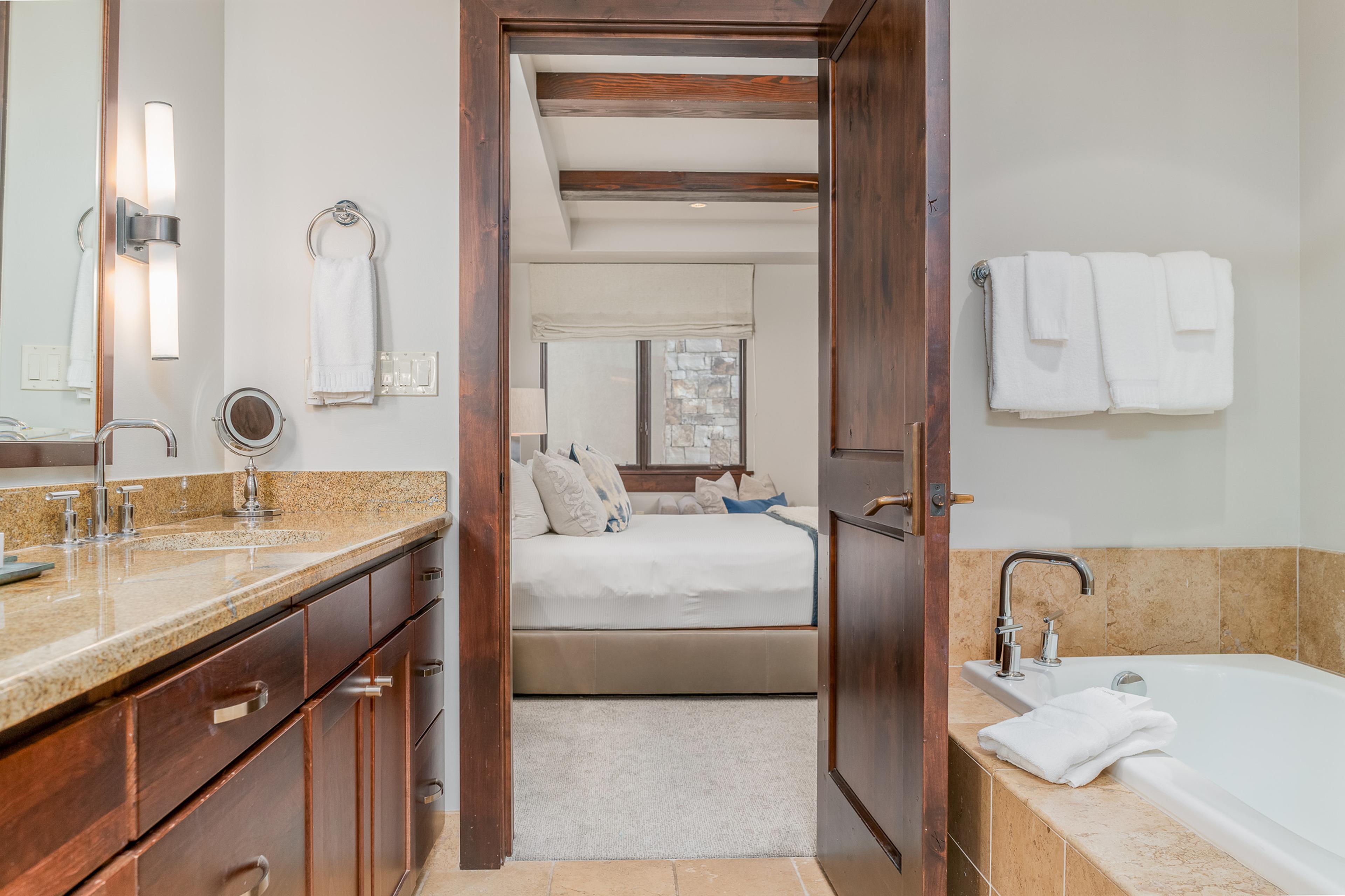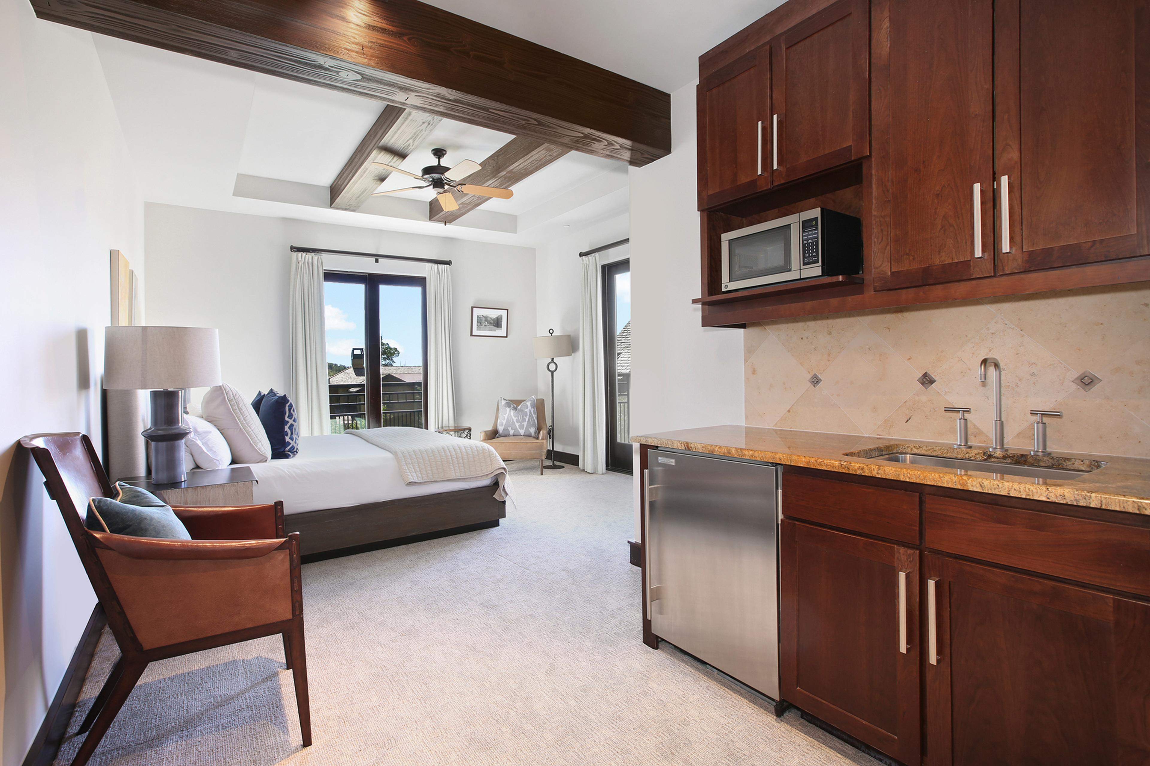At roughly 300 square feet, the Studio Deluxe is Lumière’s smallest category—best suited to shorter stays, lighter packing, and guests who want a simpler foothold in Mountain Village. Views are limited or absent, but the room keeps the same quiet, polished finish as the larger accommodations.