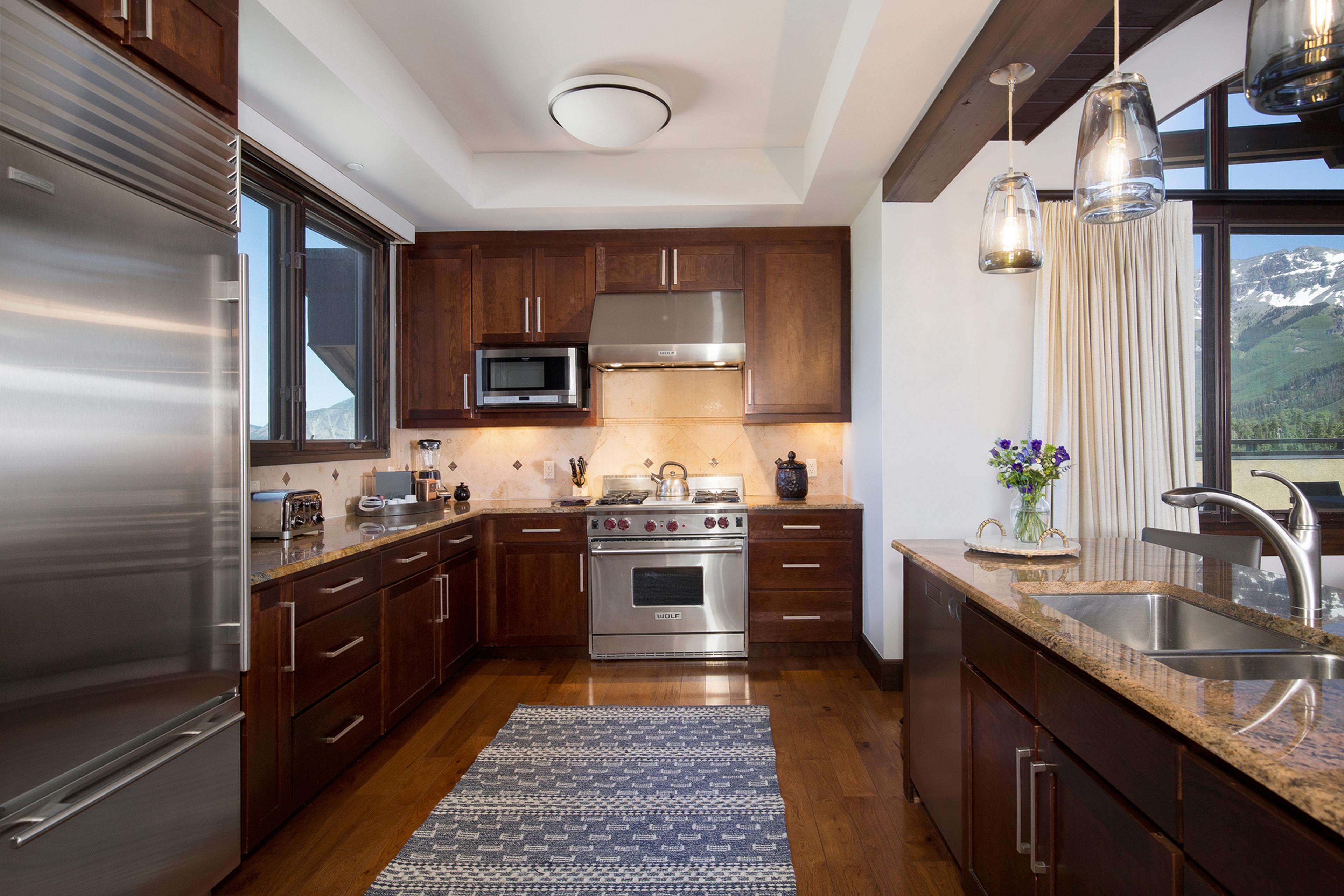 Chef’s kitchen with Wolf range and Subzero refrigerator