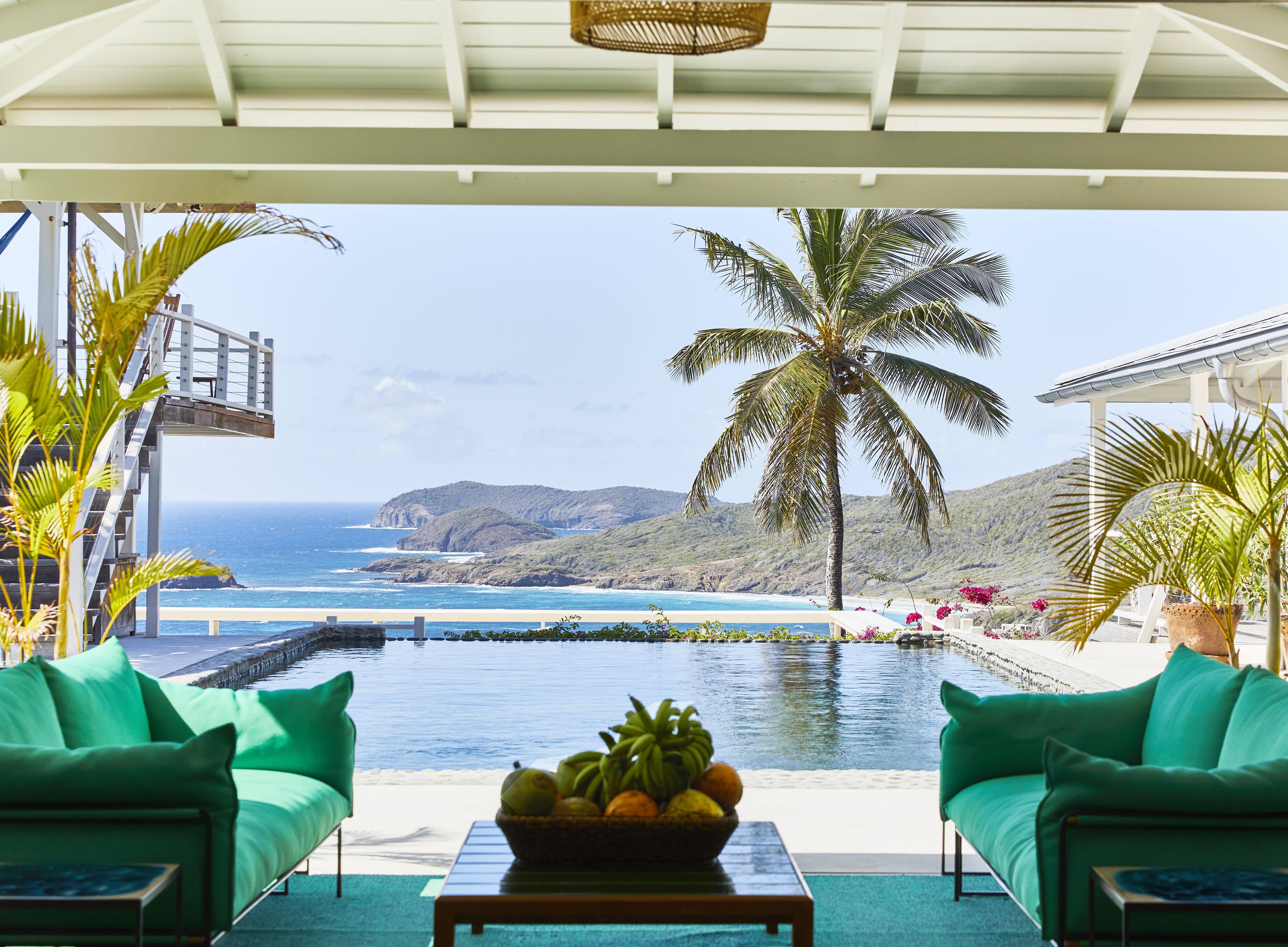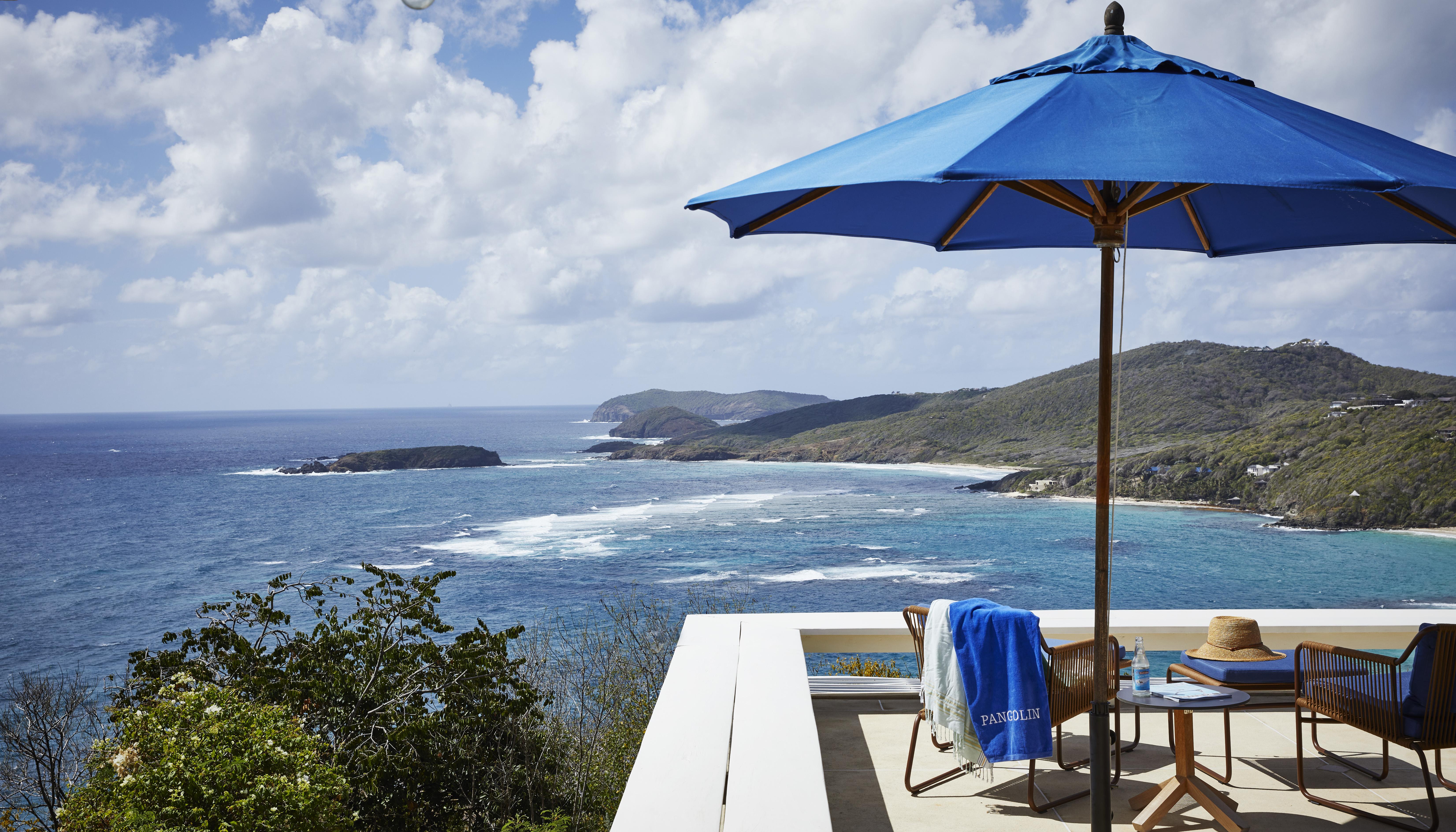 Pangolin occupies one of Mustique’s more elevated settings, with a broad outlook over Macaroni Beach and the sea beyond. The house opens naturally to its surroundings, with views carried through both the interiors and outdoor spaces.